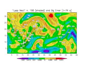 The use of ensemble forecasting and data assimilation has made apparent the importance of local predictability properties of the atmosphere in space and in time (e.g., Toth and Kalnay, 1993, Molteni and Palmer, 1993). The �spaghetti� plots and other methods used to display operational ensemble products frequently show simultaneous high predictability in some areas and low predictability in others. The regional loss of predictability is an indication of the instability of the underlying flow, where small errors in the initial conditions (or imperfections in the model) grow to large amplitudes in finite times. The stability properties of evolving flows have been studied using Lyapunov vectors (e.g., Alligood et al, 1996, Ott, 1993, Kalnay, 2001), singular vectors (e.g., Lorenz, 1965, Farrell, 1988, Molteni and Palmer, 1993), and, more recently, with bred vectors (e.g., Szunyogh et al, 1997, Cai et al, 2001).